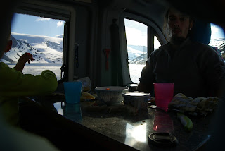 main (il était même en avance, il faisait grand jour à 3h du mat'). Nous avons entièrement remanié ou était rangé quoi! C'est quand même un peu plus intelligent d'avoir des vestes pour le grand nord que des shorts, non? Et c'est encore plus intelligent d'avoir les vestes à portée de main et non sous le lit qu'il faut démonter pour les attraper!! Grosso merdo vu le déménagement que nous avons fait, nous nous étions plantés de A à Z sur le rangement d'origine! Mais c'est fait maintenant, tout l'utile est à portée de main.