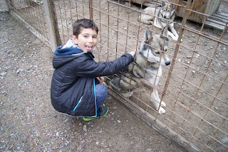 Parc à huskies avec un guide pour nous expliquer le rôle de chaque chien lorsqu'ils tirent des traineaux. Avec en prime de nombreux calins aux chiens (nous préférons de loin les voir s'éclater sur les pistes enneigées à l'avant de traineaux, mais ils n'avaient pas l'air malheureux....).