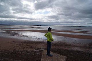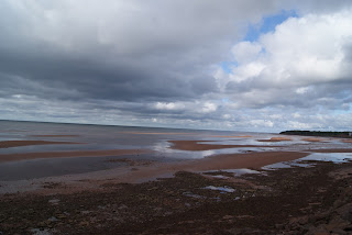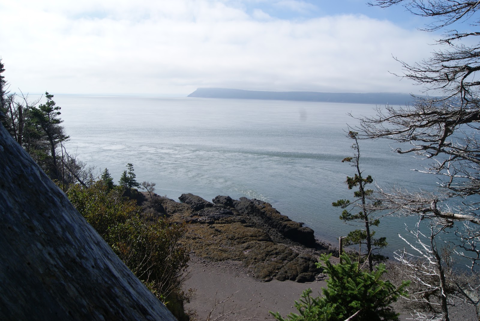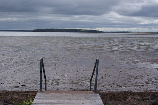 Le petit bout d'île ci-dessous était l'immense île de la photo de dessus, mais la marée remonte très très vite ici, nous sommes toujours dans la baie de Fundy.