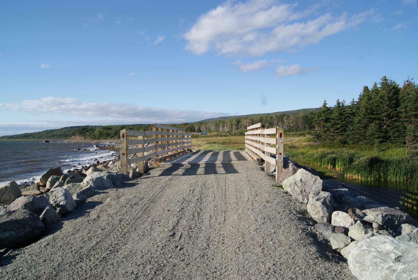 Nous décidons de continuer notre route pour faire le tour de l'île de Cap Breton, et nous redescendrons s'il le faut sur Halifax au retour. En ne chauffant pas la nuit (ce qui n'est pas nécessaire, nous avons même trop chaud depuis quelques jours), nous devrions être bons pour avoir frigo et eau chaude avec le gaz restant.