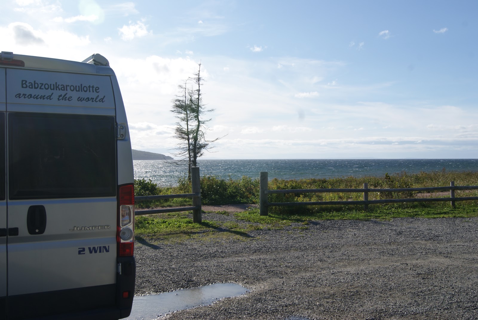 La journée d'hier était bien partie pour être une journée "morte", entre courses et recherche d'un endroit pour faire remplir nos bouteilles de gaz, nous sommes presque à bout du peu que nous avions pour traverser sur le cargo (il est interdit de faire monter un véhicule avec du gaz). Nous sommes restés plantés jusqu'à 15h sur le parking d'un Canadian Tire (magasin de bricolage, d'accessoires auto, d'un peu de tout au final) ou les employés se sont creusé la cervelle un bon moment pour savoir comment ils pourraient remplir nos bouteilles, leurs réflexions furent vaines!!! Nous nous sommes donc tournés vers les copains voyageurs qui sont arrivés un peu avant nous sur le continent Américain. Et tous ont été unanimes, tous sont passés aux bouteilles canadiennes. Ils ont été adorables en nous envoyant photos et adresses ou nous procurer les adaptateurs adéquats pour abandonner nos bouteilles et passer à celles locales. Nous vous remercions tous chaleureusement les copains. Malheureusement, toutes les adresses se trouvent à Halifax, et nous ne sommes plus tout près! Que faire?