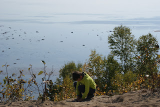 Les enfants en profitent pour dévaler à toutes barzingues les dunes et remonter dégoulinants de sueur. Ils sont allés chercher 2 petits garçons Suisses qui voyagent aussi que nous avions croisés sur le traversier pour les joindre à la joyeuse troupes des dunes!