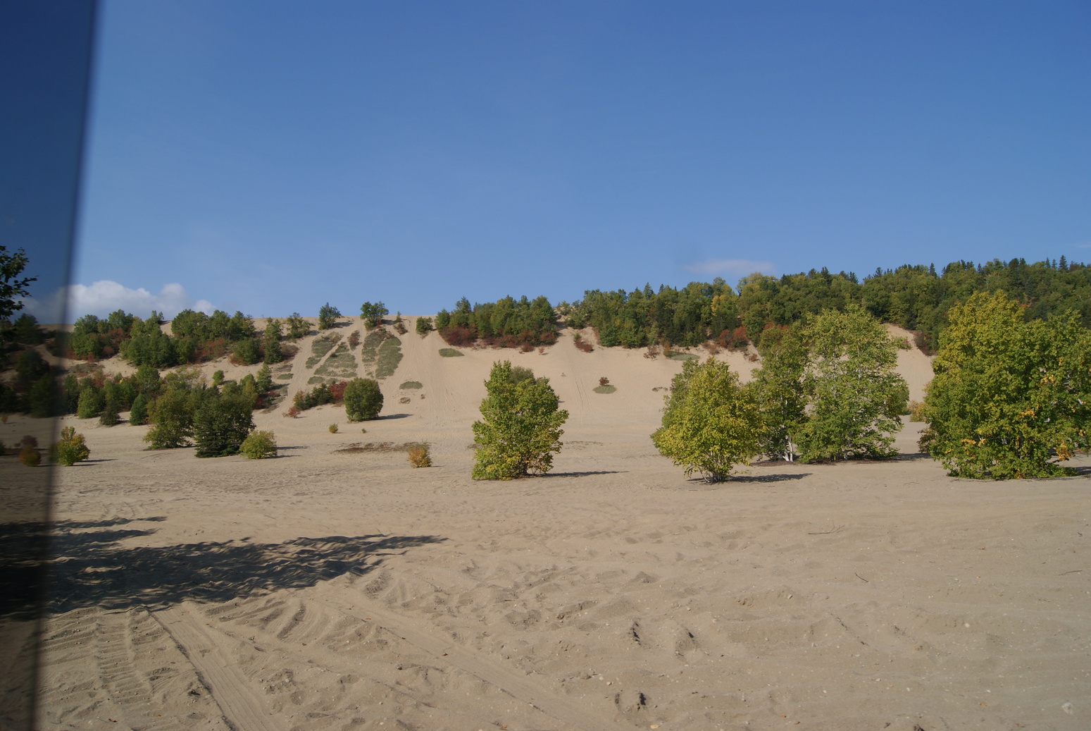 Et nous ne sommes pas déçus du voyage sitôt empruntée la route un peu cahoteuse qui y mène. Nous roulons entre sable et eaux. D'un côté, d'immenses dunes où les amoureux de sensations fortes ne doivent pas hésiter à faire rouler leurs engins motorisés sur les fortes pentes ensablées à la vue des nombreuses traces.