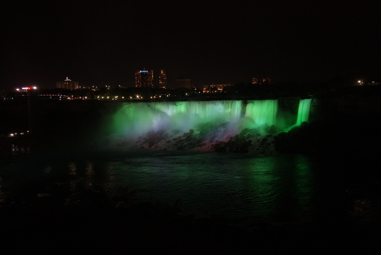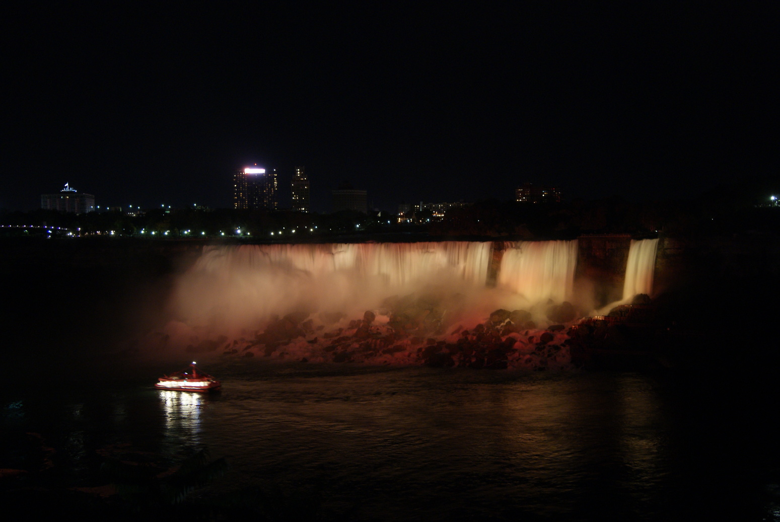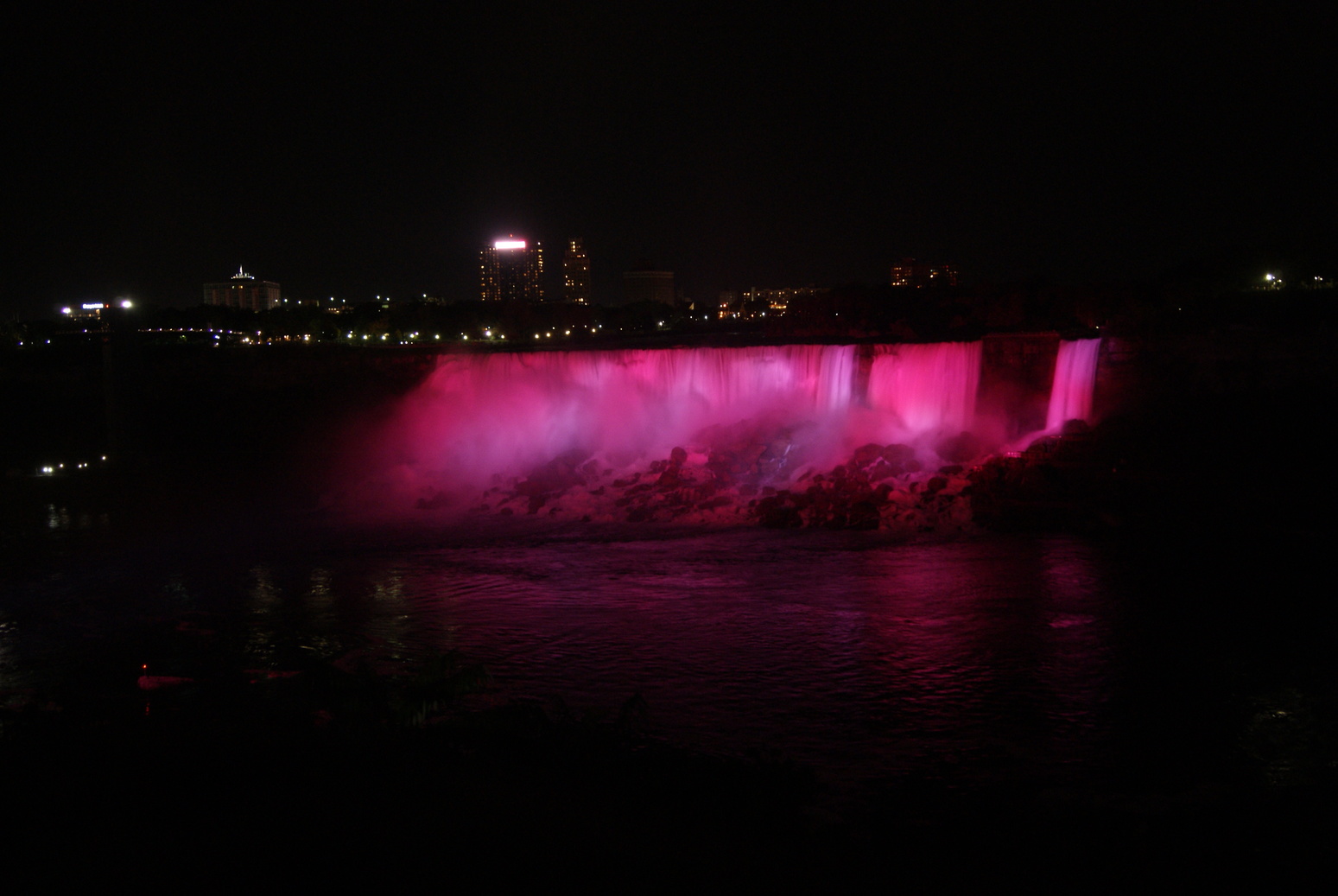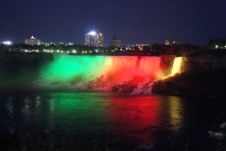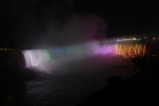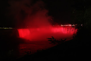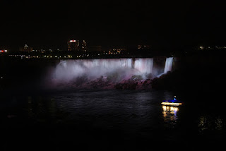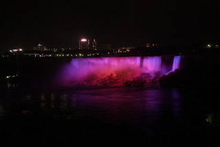 Nous pouvons donc admirer les chutes illuminées de nuit. Et là un gros waouh! pour nos yeux!!!