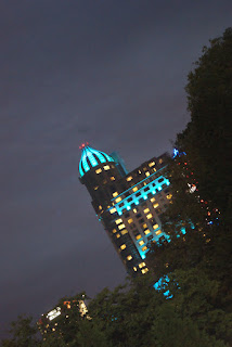 buildings. C'est signe que les légendaires chutes ne sont pas très loin. Ces grands gratte-ciels ne sont que de grands hôtels qui jouent du coude à coude avec de modestes motels qui eux sont bien au ras du bitume sans vue spécifique. Nous retrouvons tous ces noms d'hôtels luxueux que nous connaissons bien en Europe. Le prix des chambres doit varier en fonction de la vue sur les chutes ou pas de vue du tout! Dommage que les tours ne puissent pas tourner, ce serait le jackpot pour encaisser des milliers de dollars! Un Las Vegas à échelle minimisée a poussé dans ce petit creux au sud de l'Ontario. On aime ou on aime pas, ça prête à polémique ou pas. A vrai dire la question ne se pose même pas puisque ce n'est pas pour aller tatouiller du bandit manchot ou bluffer au poker que nous sommes là et puis en extrapolant le côté purement mercantile, la nuit se colore de milles feux ce qui n'est pas désagréable A L'OEIL.