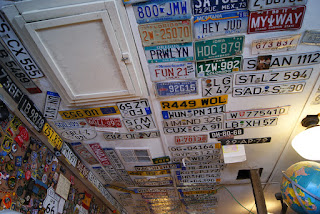 De très nombreuses plaques d'immatriculation du monde entier ornent murs et plafonds. Nous n'avons pas de plaques de rechange (nous supposons que ceux qui l'ont fait en avaient!) et ne laissons donc pas la notre!