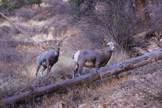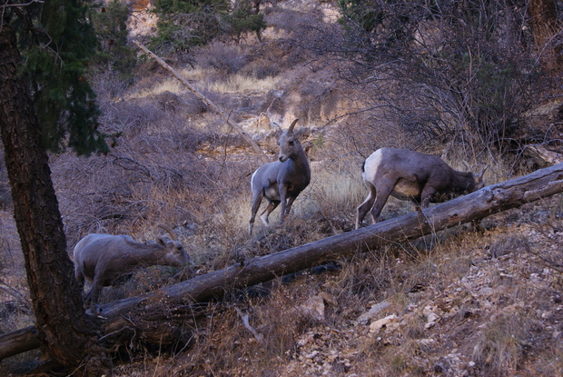 Encore des copines sur le bord (nous pensons sans certitude qu'il s'agit des femelles de mouflons d'Amérique...)