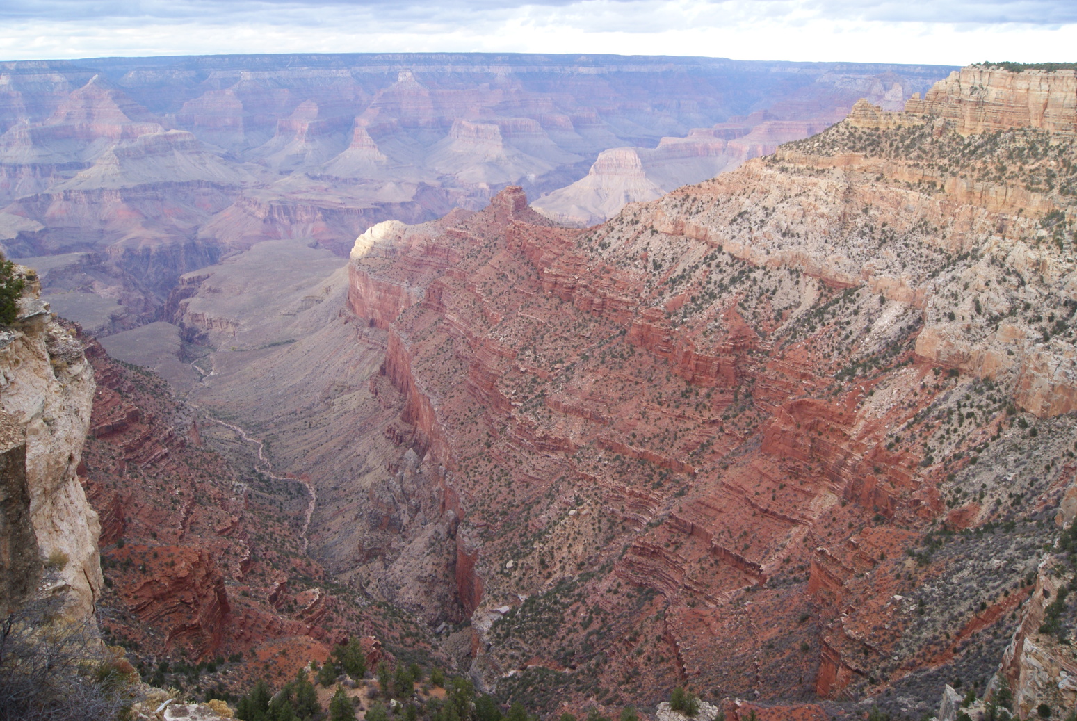 Il y a un ranch tout en bas, ravitaillé uniquement par des mules. Nous en avons vue passer une caravane qui descendait par le même sentier que nous.