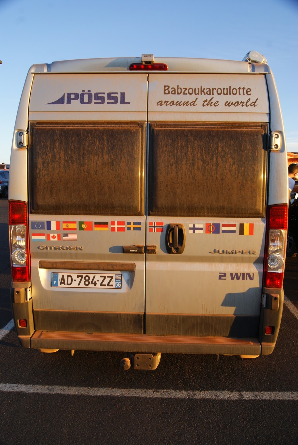 avons pris l’option de dormir tranquillement sans attiser les convoitises, en allant demander à un hôtel si nous pouvions emprunter une petite place sur leur parking, ce qui nous a été accordé immédiatement.