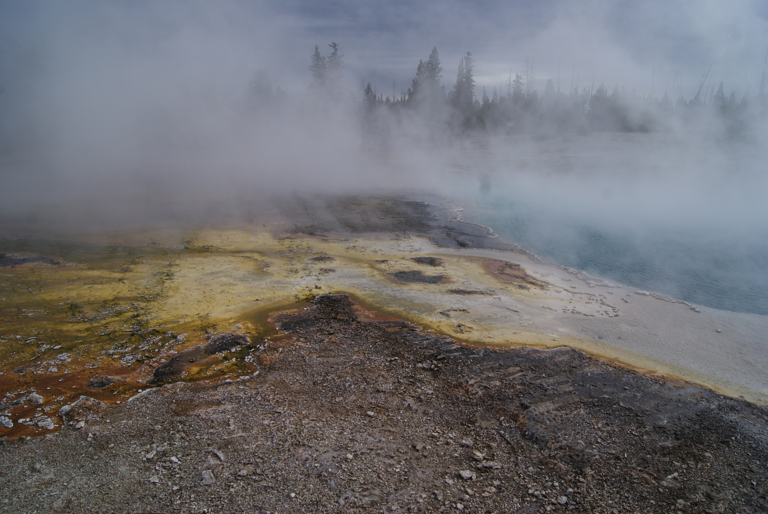 Tous les alentours ne sont que des fumerolles qui sortent de toutes parts. L'activité de ces geysers est complètement anarchique, certains crachent leurs jets d'eau brûlante (jusqu'à 137°) à intervalles aussi réguliers que des notes sur du papier à musique et d'autres se réveillent aléatoirement quand bon leur semble. Et les intervalles peuvent aller de quelques minutes à des décennies voire des siècles!