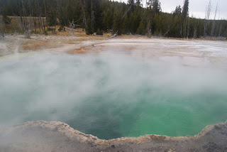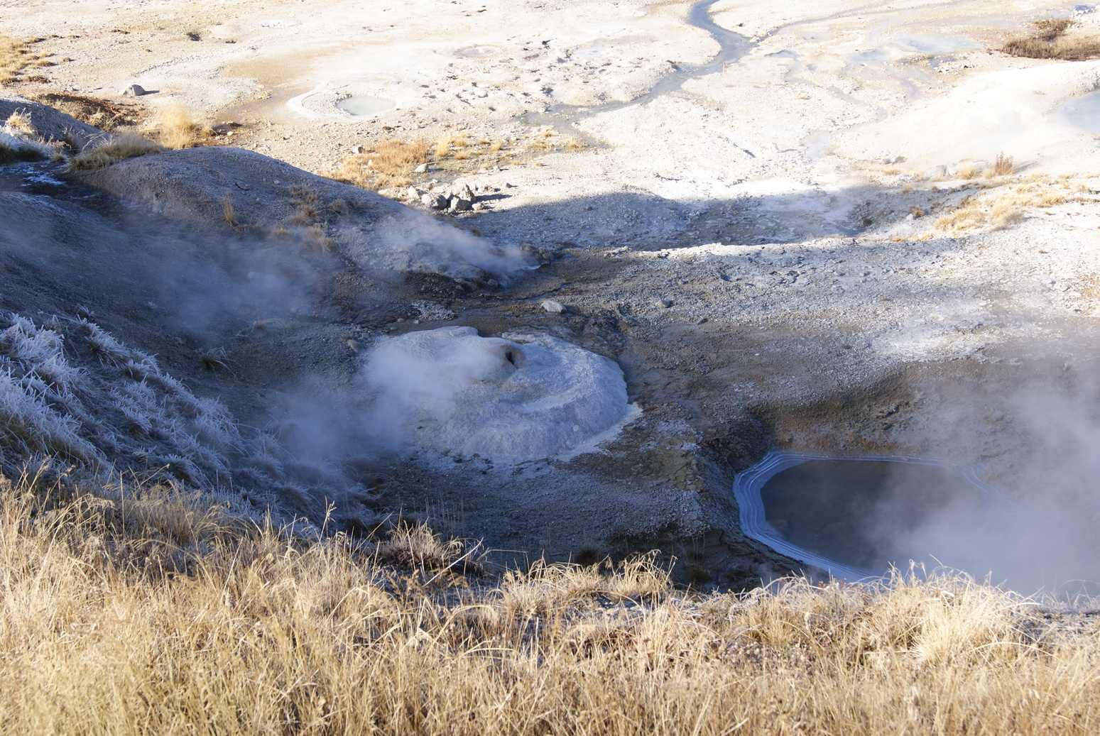 Nous arrivons maintenant à Geyser Country: Ce site présente les plus nombreux phénomènes géothermiques du parc.