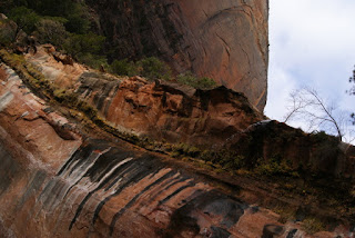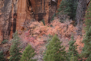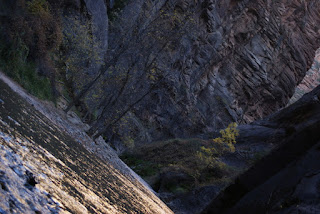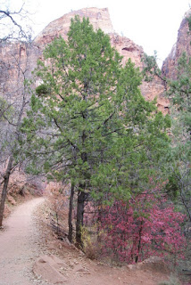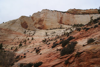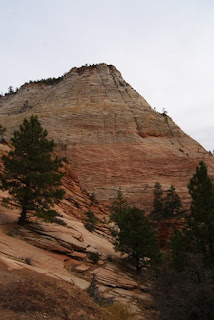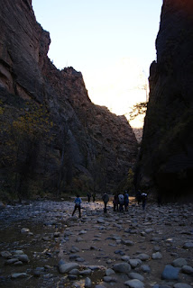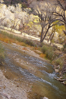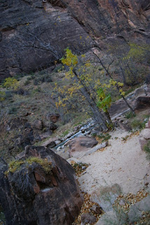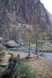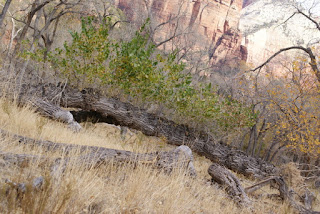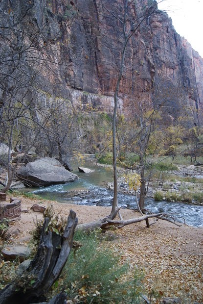 Et encore un autre ah si que nous avons gardé au chaud. Nous ne voulons tout de même pas que vous passiez à côté du parc sans vous y arrêter (quoi on change d'avis?!?). Nous n'avons pas non plus fait les 2 randonnées fétiches du parc (ben voilà aussi si nous n'y mettons pas un peu du notre!!!!). L'Angels Landing trail qui grimpouille et redescendouille sur 9km et où certains passages sont un peu périlleux, le sentier suit une crête étroite et abrupte où il faut s'accrocher à des chaînes pour passer. Et puis le trail qui se fait quasiment qu'en marchant dans la rivière. Des chaussures et pantalons sont prêtés en cette période froide. Xavier, le cycliste avec qui nous avons visité Monument Valley a fait ces 2 trails lui et il nous a garantit que ce sont les plus chouettes de tous les parcs :-)))