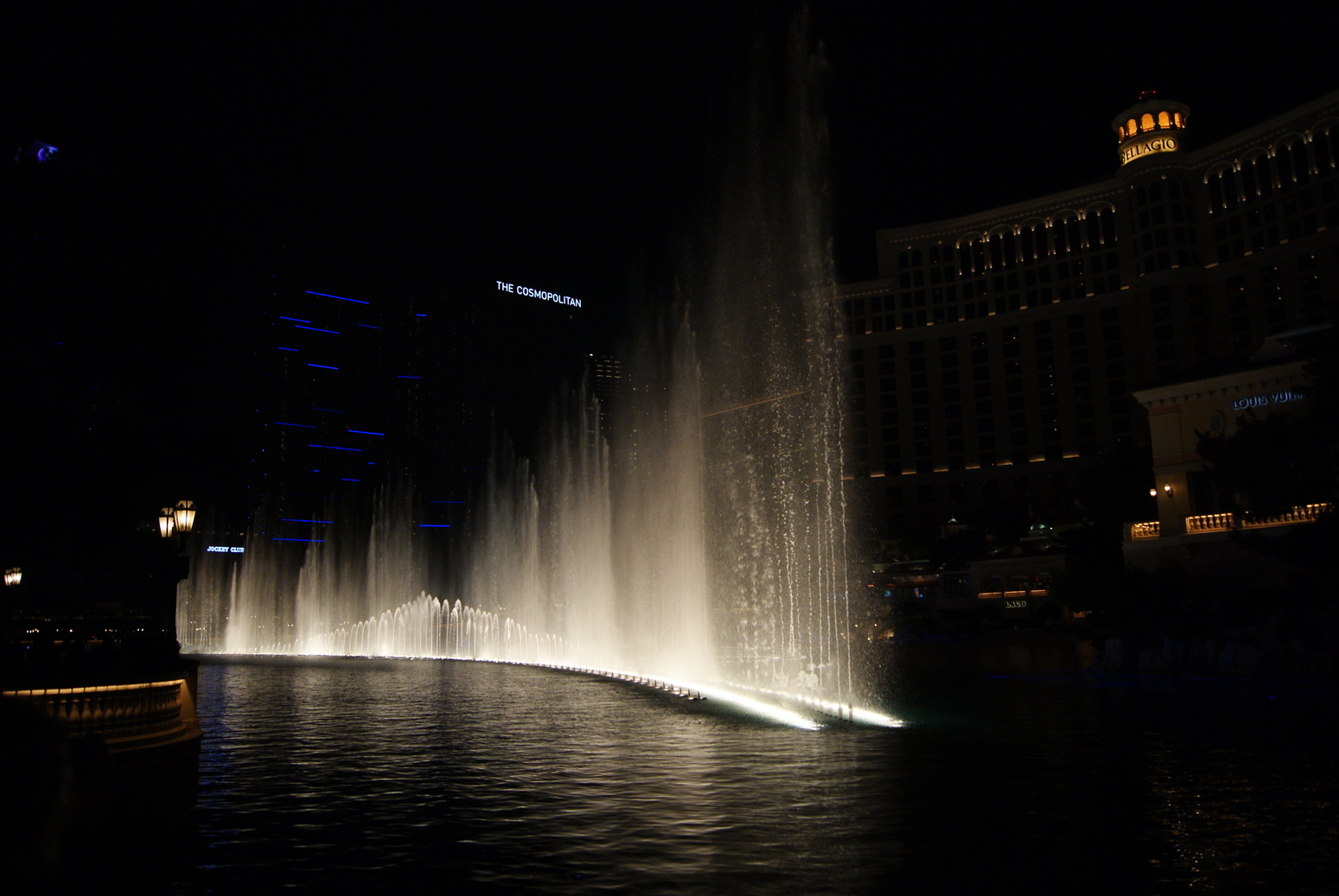 Le superbe spectacle des jets d'eaux de l'hôtel Bellagio.
