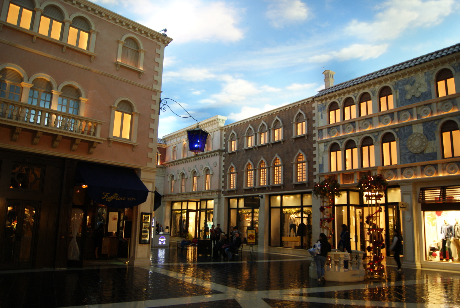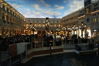 Et Venise comme si nous y étions sans avoir traversé l'Atlantique. Difficile à imaginer, mais nous sommes au second étage de l'hôtel Venetian. Les canaux et les gondoles sont bien là Et ce n'est pas pour un petit parcours de quelques mètres. Les gondoliers emmènent leurs passagers en leur chantant des mélodies d'amour tout au long de ce long canal que nous pouvons observer tout en ayant la sensation de déambuler en plein centre de Venise. Le détail a été poussé jusqu'au ciel avec ses nuages qui bougent à une hauteur démentielle....et nous sommes toujours bien au second étage de l'hôtel!