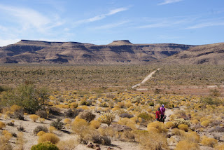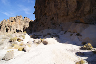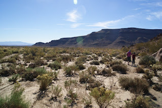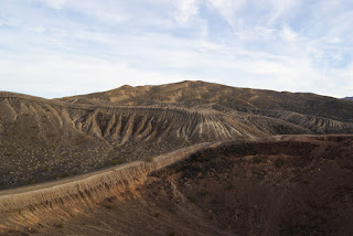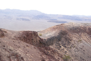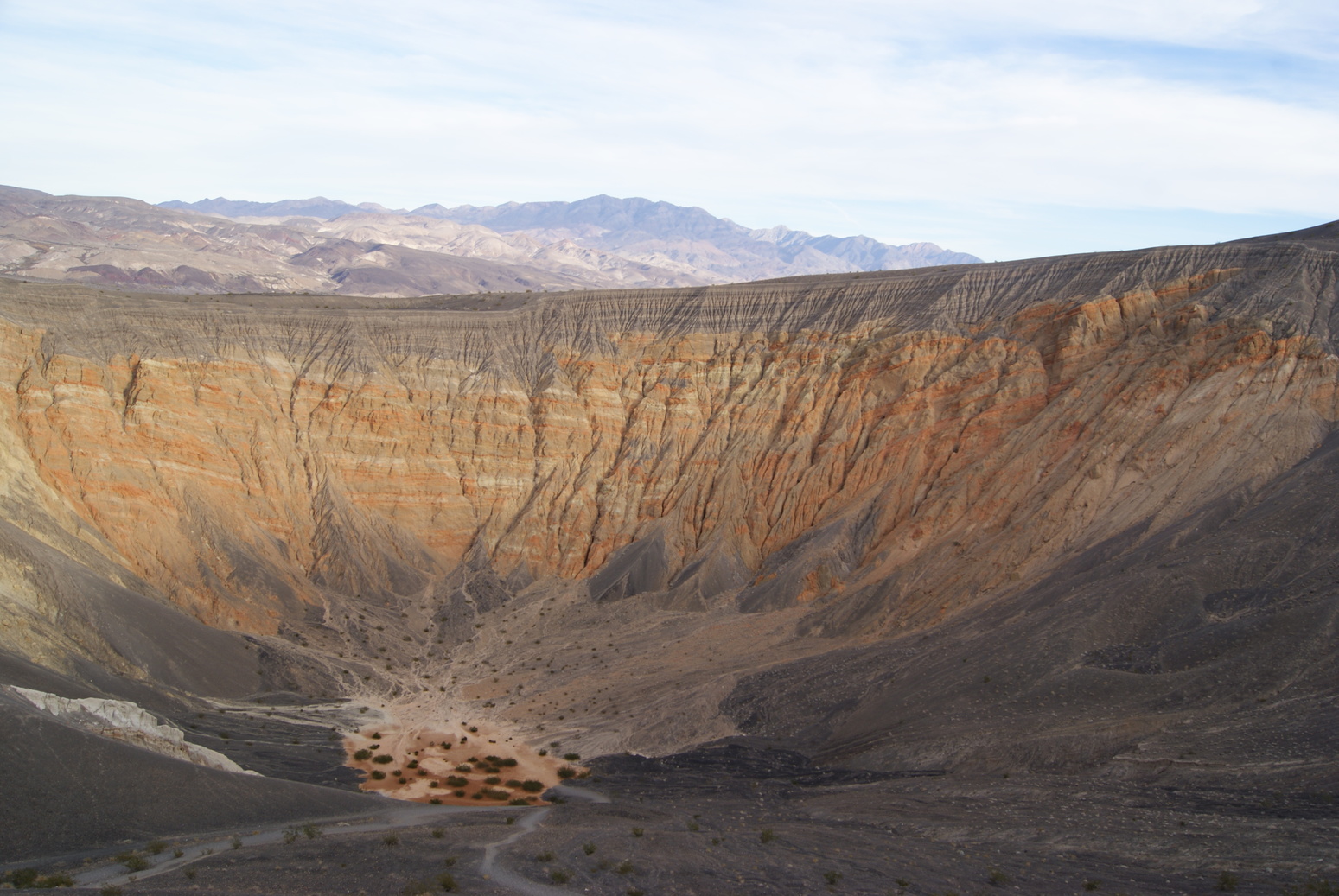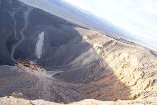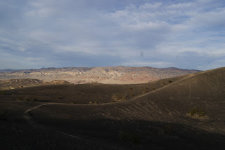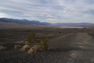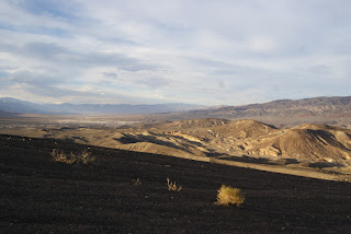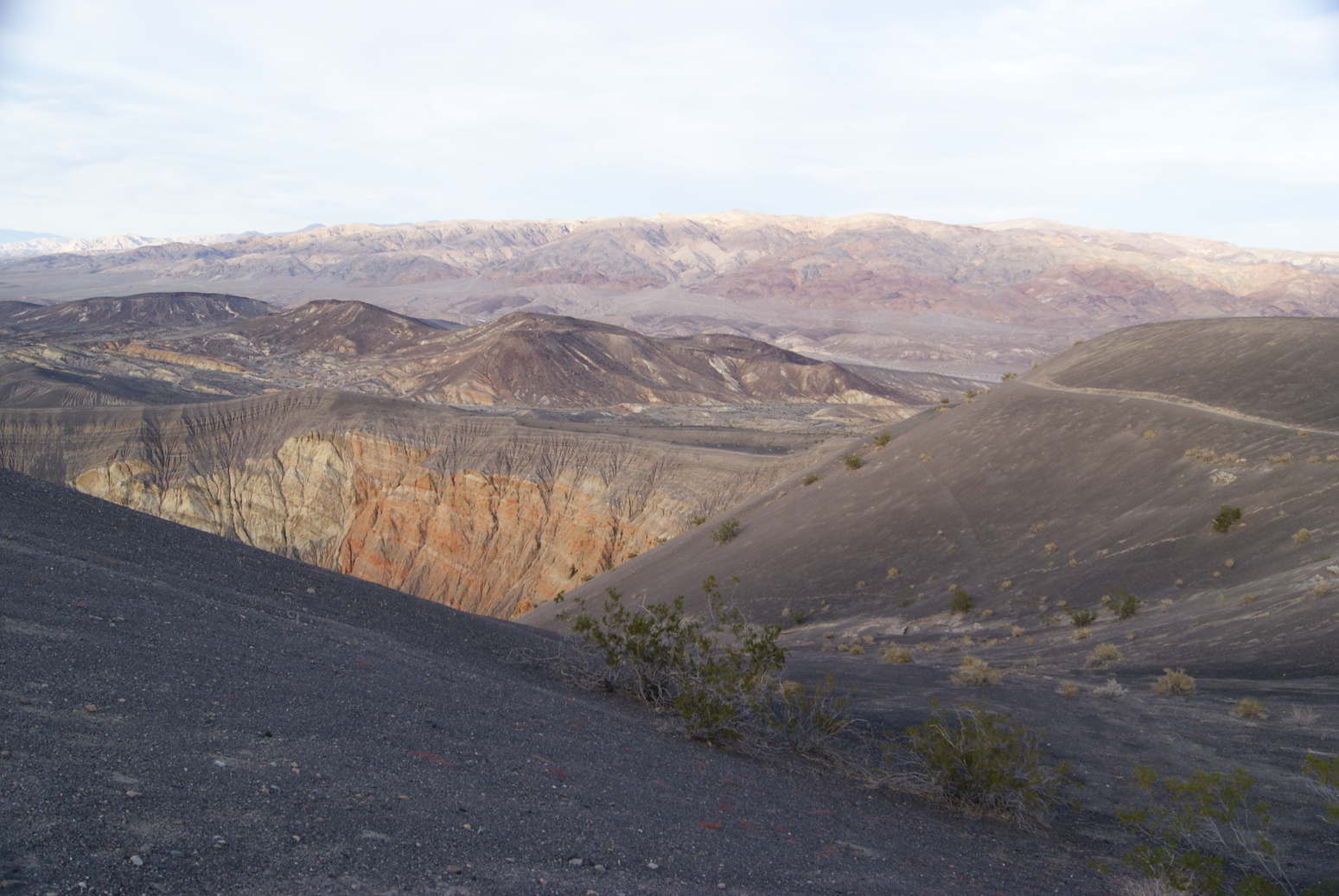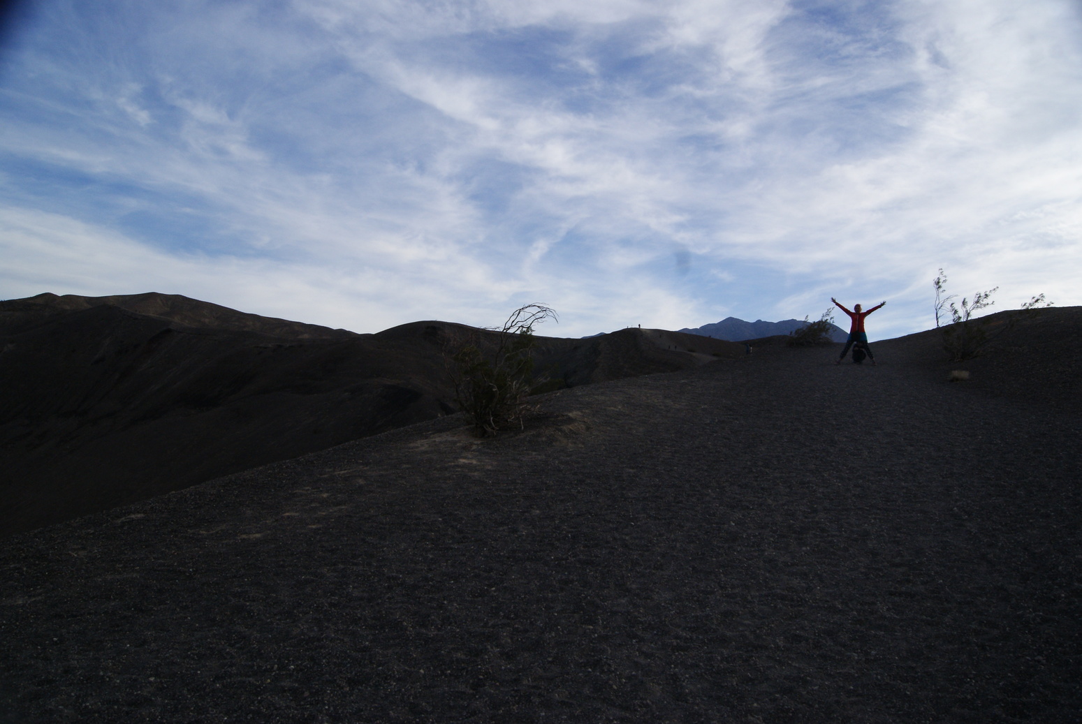 Nous sommes montés jusqu'au bout de la route du parc pour crapahuter sur les flancs du volcan Ubehebe où nous avons même eu un tantinet froid. Il a fallu enfiler les vestes pour se balader.