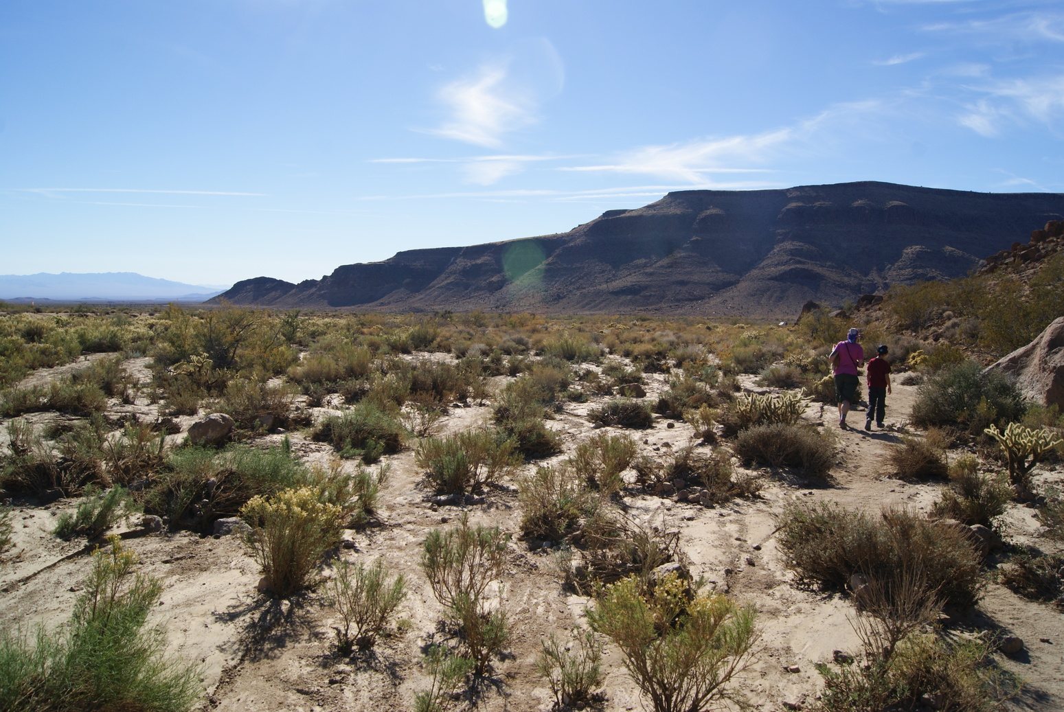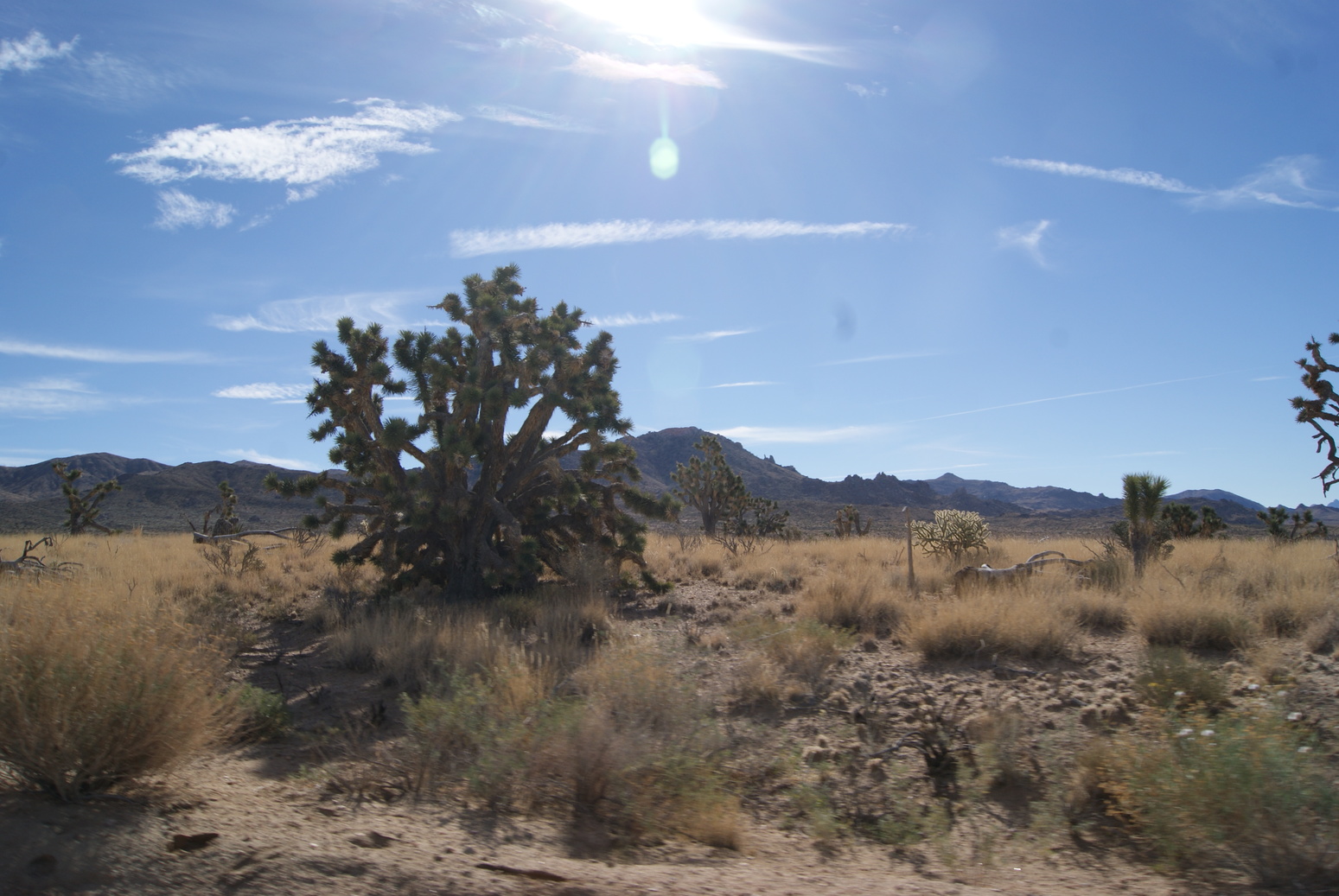 Nous sommes en plein désert de Mojave, au milieu des innombrables cactus, des tarentules, des scorpions, des coyotes et autres bestioles sympathiques qui sont les seules à résister à ces milieux hostiles. Nous ne croiserons qu'un coyote et contrairement aux ours, nous n'avions pas plus envie que ça de croiser autre chose!