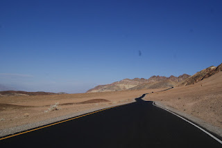 En ce qui nous concerne, un autre grand désert nous attend. La fameuse et redoutable Death Valley. L'endroit où il est strictement interdit de circuler à pieds ou en vélo, cette immensité ou il nous est demandé d'avoir au minimum 4l d'eau par personne avant de s'aventurer sur les routes.