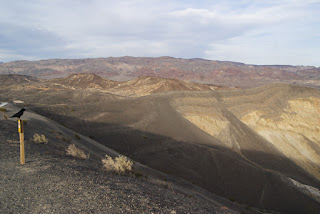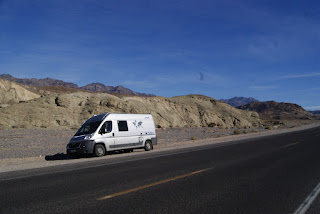 Juste pour les prochains voyageurs de la Death Valley, de très nombreuses recommandations sont affichées de partout quant à avoir toujours le plein d'essence avant de lancer sur les routes. Nous confirmons qu'il faut bien les suivre! Notre petit fourgon très peu gourmand habituellement nous a affiché une belle consommation de plus de 28l sur la route de la sortie de la vallée où il faut passer de -86m à plus de 1300!