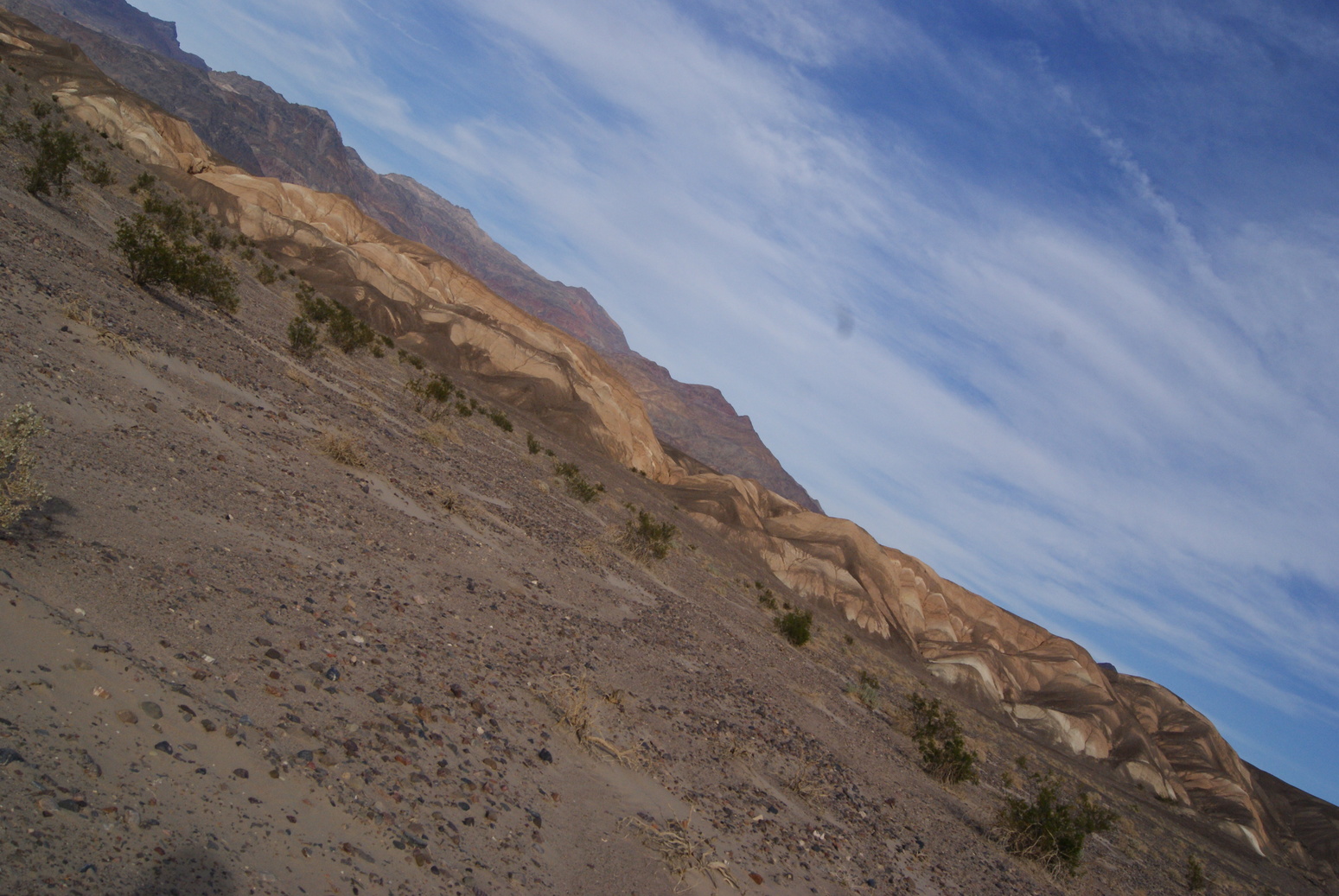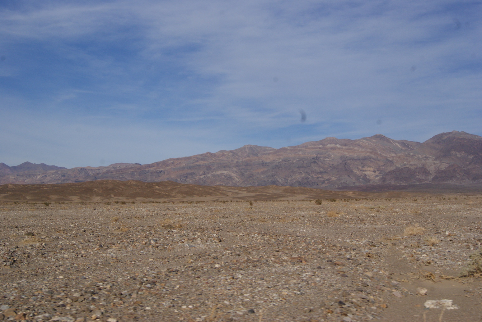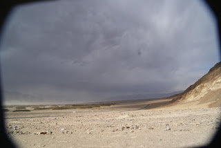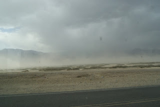 Sur le retour des badwaters, nous avons essuyé une grosse grosse tempête de sable. Il était impossible de sortir sans se faire bousculer par le vent. Nous avions vu la veille au Visitors Center que la météo prévoyait un peu de pluie. Nous aurions vécu un moment unique ici en voyant de l'eau tomber. Enfin avec l'image de cette aride Death Valley que nous avons, parce qu'il arrive qu'il pleuve et bien souvent ça peut rapidement devenir une catastrophe avec le ravinement et ce qu'ils appelent des Flashs Floods (inondations soudaines).