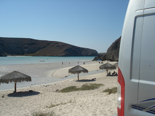 Tout le monde reste là jusqu'à la tombée de la nuit et s'évapore ensuite pour ne laisser la place qu'aux campeurs. Nous étions 3 camping-cars ce soir là et avons pu profiter quasiment seuls du lever de soleil sur la baie....jusqu'à 8h, heure à laquelle d'autres mexicains harnachés de leurs enceintes venaient juste prendre le petit déjeuner sur la plage et s'en aller en suivant. C'était excellent!