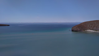 Nous, nous allons à Cabo Pulmo, un peu au Sud de La Paz, classé parc national maritime qui protège l'unique récif corallien de la côte Pacifique du golf de Californie. Nous coupons la route en 2 et faisons une petite halte aux abords de La Paz pour faire un bon ravitaillement avec des supermarchés où nous pouvons trouver de tout, ce qui n'était absolument pas le cas jusque là! Et c'est aussi ici que nous avons trouvé les croquettes de Babzoukachien sur les bons conseils du secrétariat d'un vétérinaire croisé quelques dizaines de kilomètres plus haut. Le fameux sens des Mexicains à vouloir toujours aider du mieux possible! Merci!