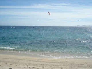 Nous avions repéré à la descente une petite ville avec une multitude de petites voiles bariolées dans le ciel, et c'est donc sur Los Barilles que nous mettons le cap pour voir si l'eau est plus accueillante que plus bas.