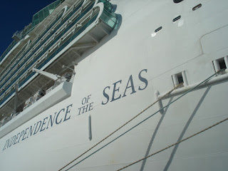 L'independence of the seas nous attend sagement arrimé au bord. Il reste pour nous à faire une longue queue afin de passer les premiers contrôles et nous rendre aux quichets pour récupérer notre sea pass, carte qui nous servira tout au long de la croisière pour tout, ouverture de cabines, paiements pour ce qui n'est pas compris (donc juste les boissons alcoolisées).... Et à ce stade là, nous sommes tous lotis à la même enseigne, les croisièristes comme nous, les groupes qui font eux aussi la queue leurs instruments en main, des familles avec leurs enfants arnachés de leurs pelles et leurs seaux, des personnes plus âgées, des jeunes.....tout le monde patiente ensemble dans la bonne humeur sans que quiconque ne vienne perturber l'autre. Cet état d'esprit se confirmera au fil des jours, tout le monde respecte tout le monde! On comprend facilement pourquoi les groupes aiment tant venir jouer ici.