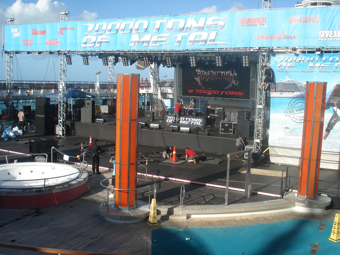 | Montage de la grande scène pont 11, et oui tout se fait en live puisque le bateau vient d'arriver |