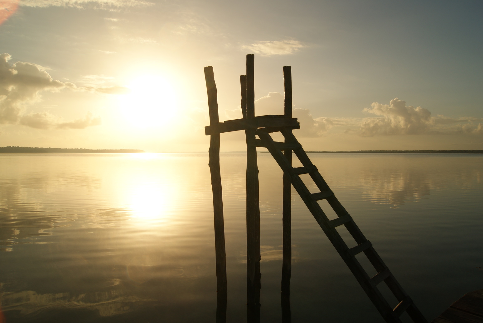 Nous commençons par longer les bords de la lagune en jouant aux voyeurs pour observer les superbes villas qui sont venues se nicher au coeur des petites criques avec des accès directs pour profiter de l'eau ou se relaxer sous leurs palapas sur pilotis. Quel régal (s'il y a moins de moustiques, ou alors on nous a dit qu'au bout d'un moment on s'habitue, c'est pas encore l'heure pour nous :-()!!!!