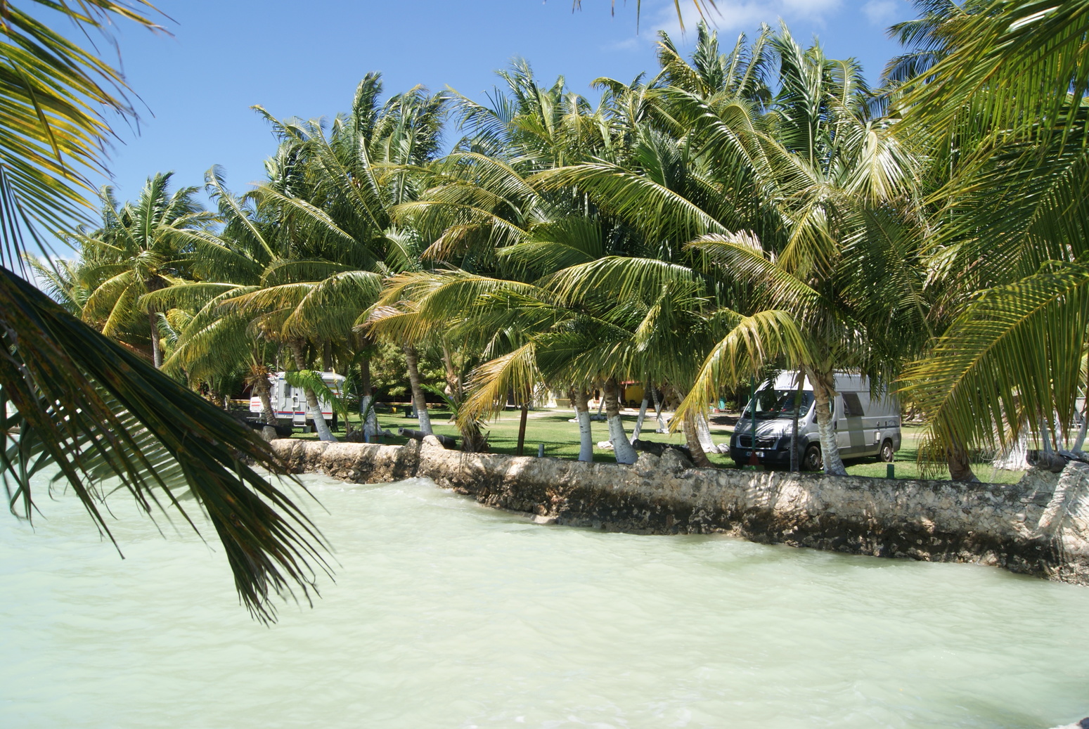 Nous sommes bien au bord de la lagune appelée lagune aux 7 couleurs en fonction de la profondeur de l'eau. Aujourd'hui, il y a beaucoup de vent et de vagues, nous ne voyons pas les 7 couleurs! L'eau est bien brassée et le sable du fond avec, mais l'eau reste néanmoins bien claire.