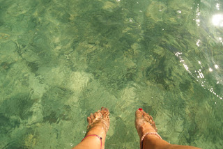 Mais revenons-en à la veille. Nous sommes installés à notre place en tout début d'après-midi et enfilons derechef nos maillots pour aller nous aussi goûter aux joies de cette eau claire et chaude. Nous pouvons emmener Babzoukachien avec nous sur les pontons et pour la première fois, nous pouvons nous baigner avec elle. C'est que ça nage bien plus vite que nous cette petite bestiole!!! C'est où les inscriptions pour se qualifier pour les prochains JO d'été?