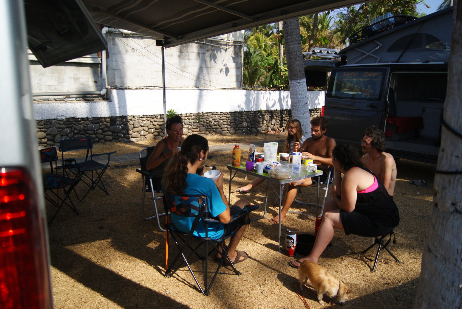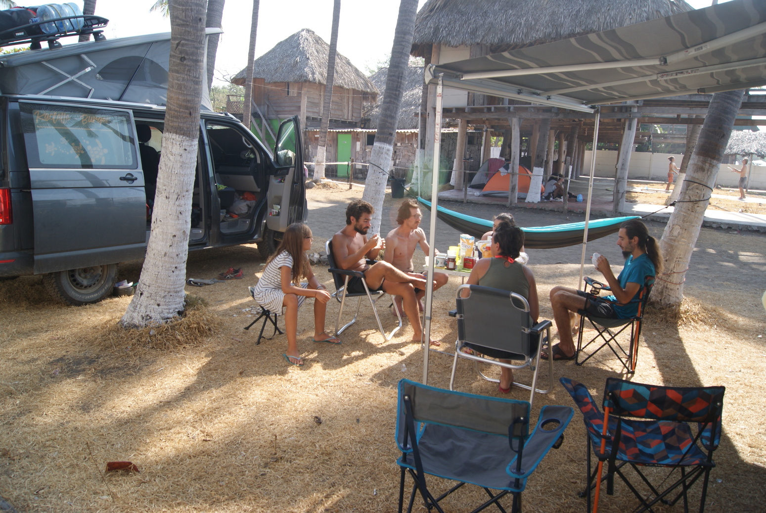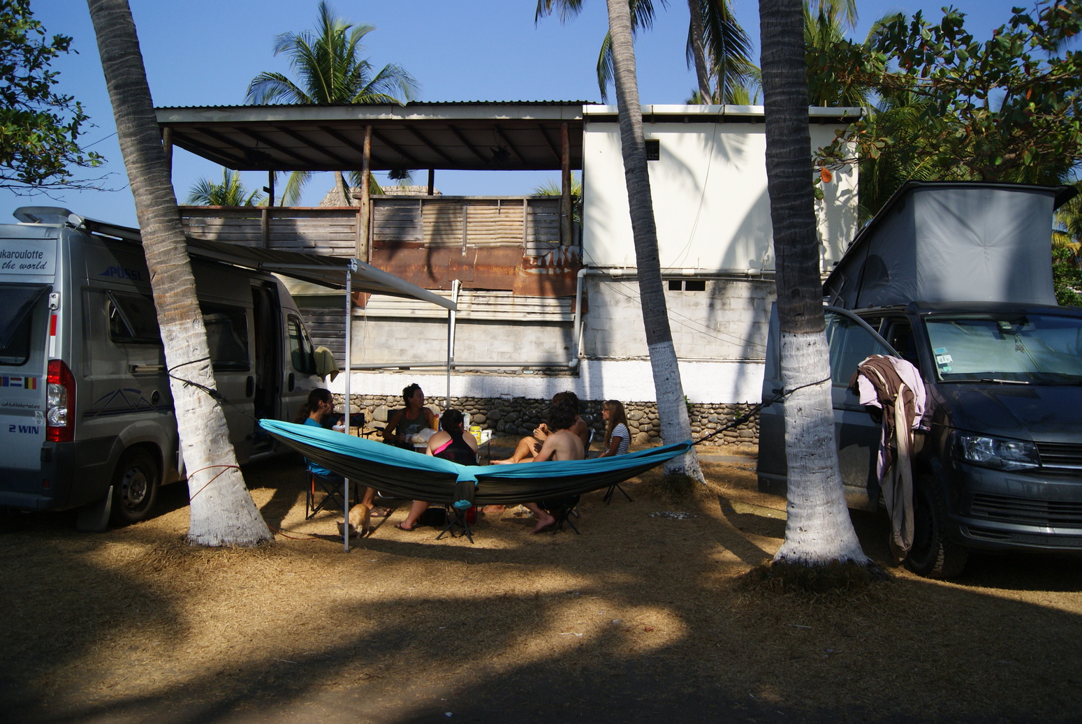 Nous arrivons presque à la nuit, mais nous sommes au rendez-vous pour retrouver nos premiers amis voyageurs L'Opération Raclette Burger. Nous nous étions quittés il y a plus de 5 mois à Montreal et nous étions promis de nous croiser encore une fois en Amérique Centrale, nos itinéraires ayant été différents. Eux sont descendus rapidement au Mexique puis sont allés jusqu'au Nicaragua, point le plus au Sud de l'Amérique Centrale de leur périple pour maintenant remonter sur la côte Ouest des Etats Unis et du Canada, ce que nous avons visité nous auparavant.