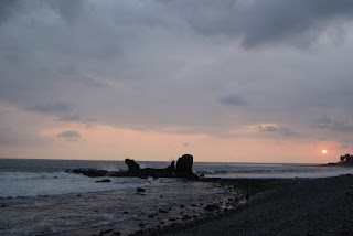 Nous irons goûter à la spécialité Salvadorienne pour notre dîner. Les Pupusas feront l'unanimité, c'est très très bon. Ce sont des petits chaussons fabriqués avec la même pate que les tortillas, mais ils sont fourrés soit à la viande, au fromage ou aux frijoles. Le petit stand en bordure de rue ne désemplira pas de la soirée, et Elsa s'est même lancée pour faire un essai sous l'oeil averti de la vieille dame chez qui nous les avons achetés. Il y avait de l'idée, elle s'en est très bien sortie!! Nous regarderons les vaches déambuler en pleine rue en mangeant nos Pupusas. Elle se promènent toutes seules en fouinant dans tout ce qui traîne...et il n'y a pas que de l'herbe! Une glace en guise de dessert et nous pourrons aller nous coucher. Nous filons la chercher dans la seule petite tienda du village ouverte à cette heure-ci et surprise, la dame parle français, et seconde surprise elle vivait auparavant à Montreal avant de venir rejoindre son village natal. La discussion pouvait aller bon train!!!!