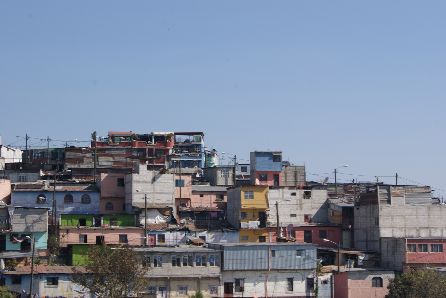 Les favelas de la banlieue de Guatémala City accrochées à leurs collines par nous ne savons quel miracle....