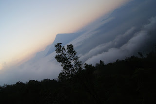 Toute la montée se fait accompagnés du brouillard, nous ne voyons strictement rien d'autre que ce qui est juste devant nous.