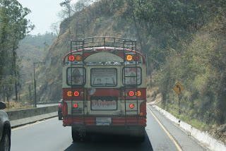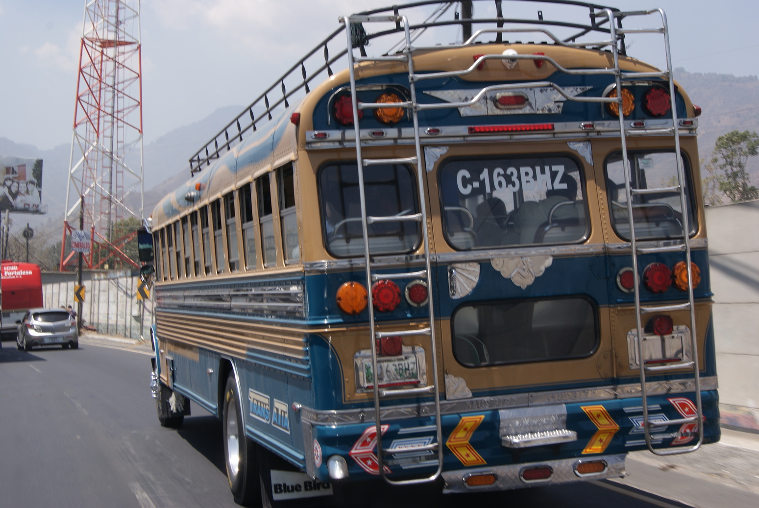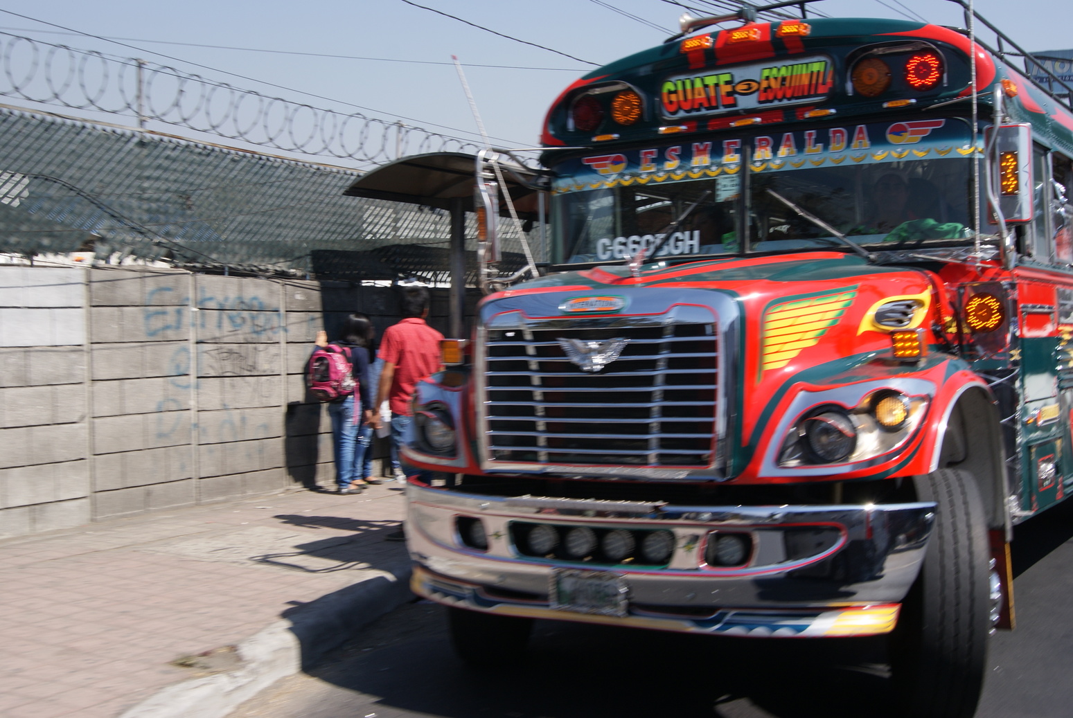 Les fameux Diablos Rojos, bus décorés à qui mieux mieux présents dans toutes les villes d'Amérique Centrale. Certains font un bruit à réveiller les résidents du Père Lachaise, mais qu'à cela ne tienne, ils sont les indispensables du paysage local.