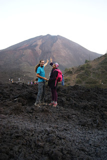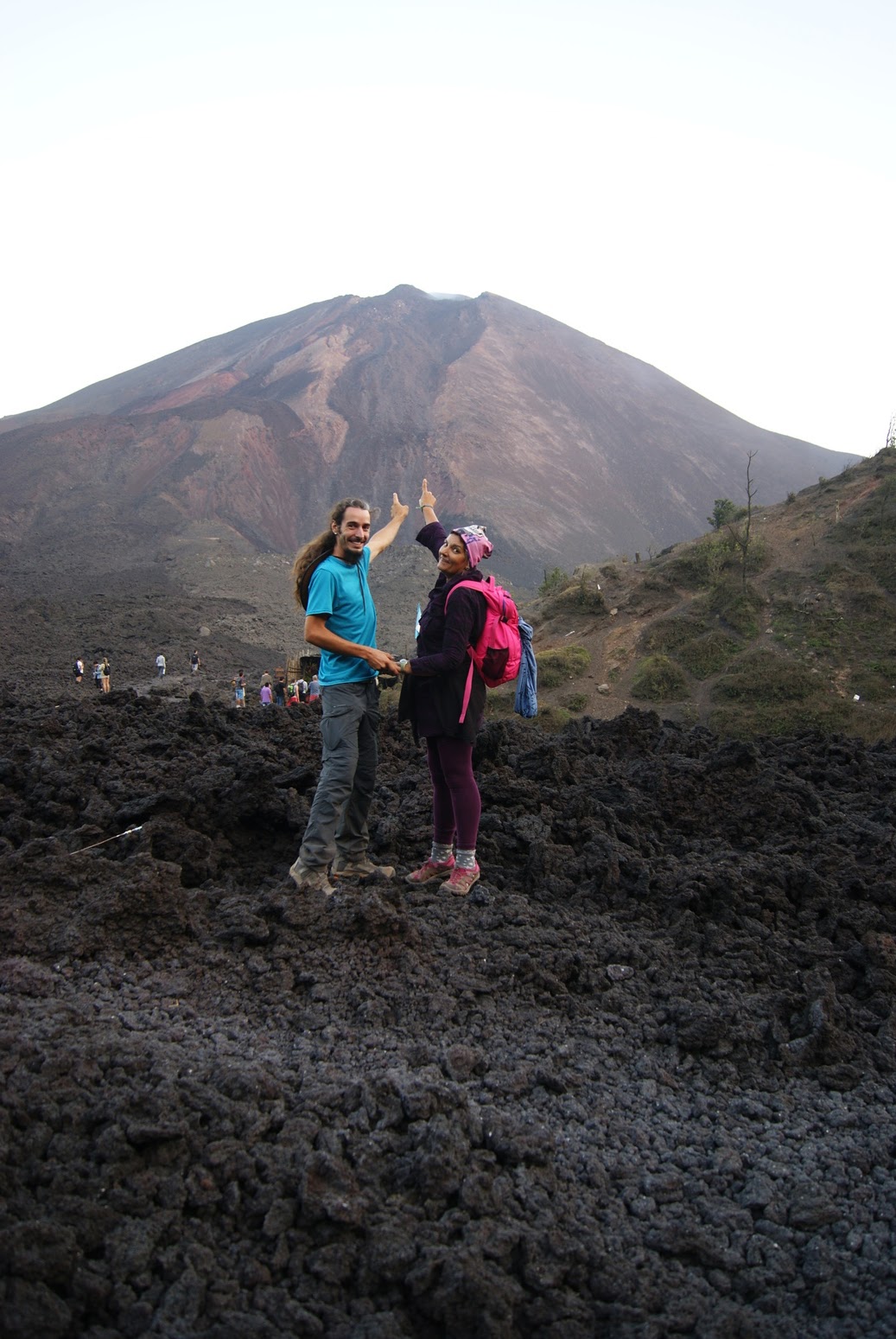 Ca doit être la photo qu'il fait faire à tous les gens qu'il accompagne, il a insisté pour que nous ayons un souvenir de "son" volcan, celui au pied duquel il a toujours vécu, celui où il accompagnait petit son père qui était déjà guide ici.