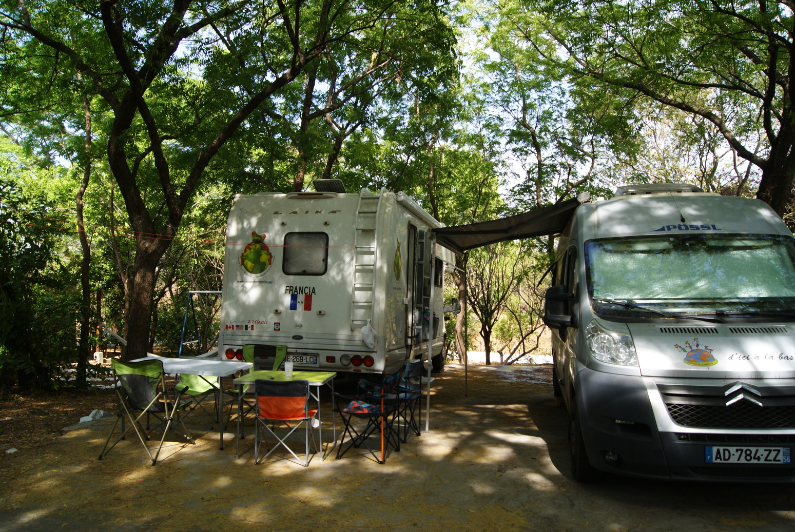 Nous sommes à peine revenus que la magie d'internet qui permet aux voyageurs de se retrouver aura encore fonctionné cette fois-ci. Nous sommes rejoints par Angélique, Eudes, Elisa et Noé d'Escapades en famille. Il n'aura fallu pas plus de temps qu'il ne faut pour l'écrire pour que l'alchimie prenne entre nous. La campement est installé et nous pouvons nous attabler pour se raconter nos aventures sur les mêmes routes depuis le Canada. Eux descendront ensuite en Amérique du Sud pour un périple plus long que le notre.