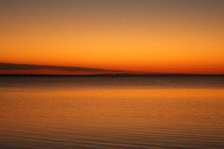 Le coucher de soleil sur le lac était divin.