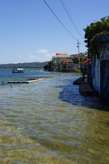 Tout le contour de l'île est recouvert par l'eau du lac une partie de l'année, ce qui n'empêche nullement les habitants pour rentrer chez eux avec des systèmes D, souvent des parpaings posés dans l'eau pour avancer pas à pas ou en marchant sur le mur qui contourne l'île. Tout le monde s'adapte à tout ici sans avoir besoin de manifester par-ci ou pétitionner par là. (attention, je ne dis pas que c'est inutile pour certaines causes!!!)